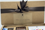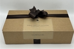 De natuurbruine geschenkdoos, afgewerkt met een chique bruin lint, straalt rust, kwaliteit en vakmanschap uit. Bij het openen ontdekt u een zorgvuldig samengestelde selectie ambachtelijke chocolade, met liefde gemaakt in onze Vughtse Patisserie.
